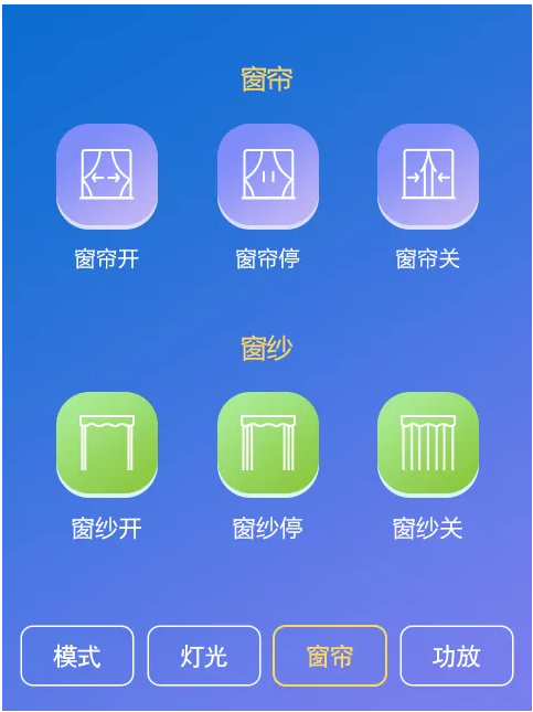场景控制:只需轻轻一键,窗帘便可徐徐关闭,还可以搭配灯光模式设置场景,例如,早晨模式、午休模式、睡眠模式等。