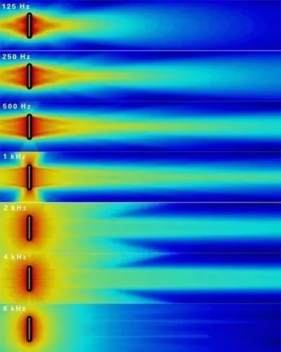 所有传统的线阵列都是这样,因为它们在这个范围内是全指向的。(该系统的水平指向图形不受垂直指向的影响,水平指向图形在任何频率都是全指向的)。