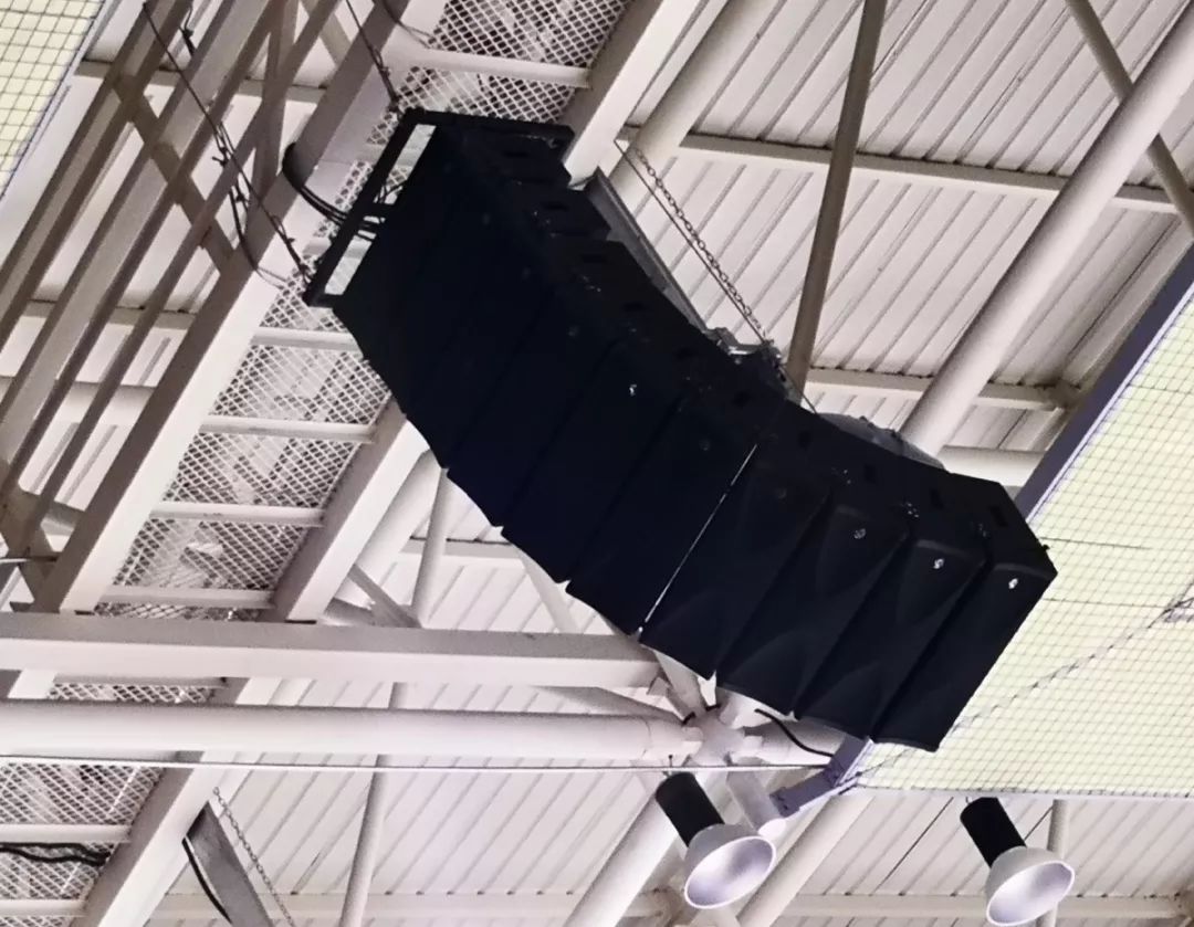 线阵列在厅堂内使用时,可使厅堂内的有效混响时间缩短。这是因为线阵列扬声器具有较强的指向性,将主声束射向观众席,可加强直达声能,减少了房间的声学比,从而降低了有效混响时间。尤其是大型体育馆混响时间普遍偏长,为满足比赛及文艺演出要求,保证清晰度,使用线阵列扬声器具有很大的优势。