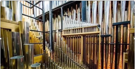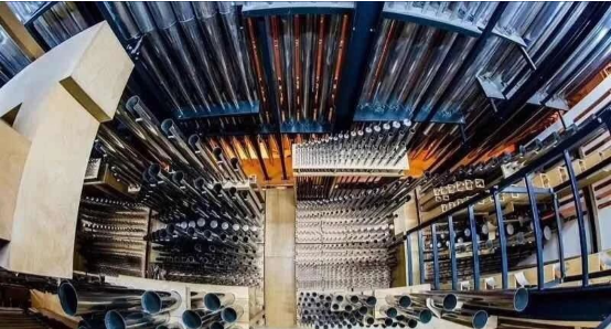 安放于音乐厅的管风琴造型典雅,音色饱满,是目前国内体积最大、栓数最多、音管最多、音色最丰富的一架,拥有94个音栓,发声管达6500根之多,能满足各种不同流派作品演出的需要,因此被形象地称为音乐厅的“镇厅之宝”。