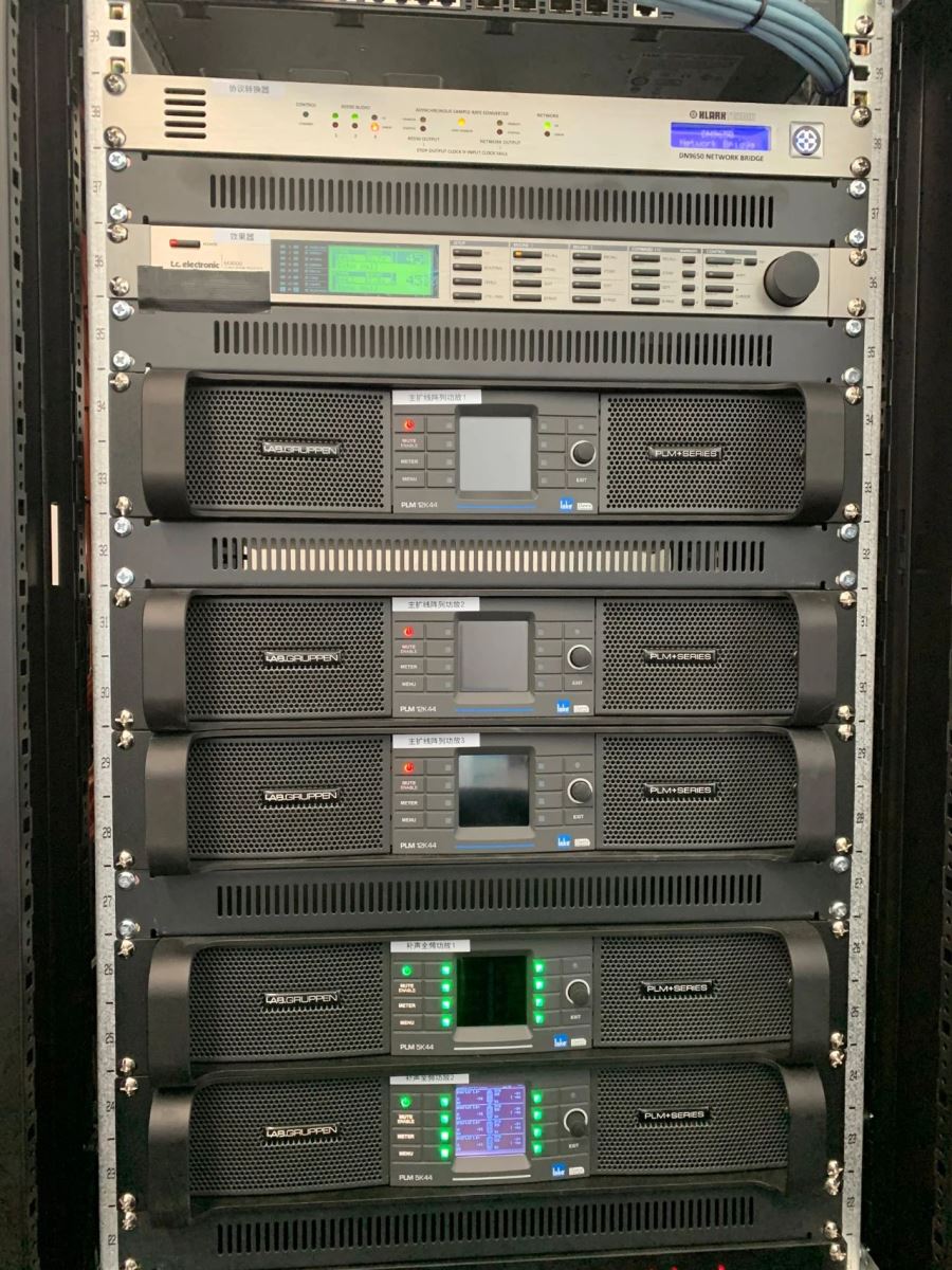 作为该音频系统的功放。PLM+系列集合了顶级的Lake处理功能和Dante数字音频网络功能,拥有充足的音频输入口和监控现场音频设备的功能,可以让系统更好的运作,在减低损耗的同时还可以进行操作和监控。